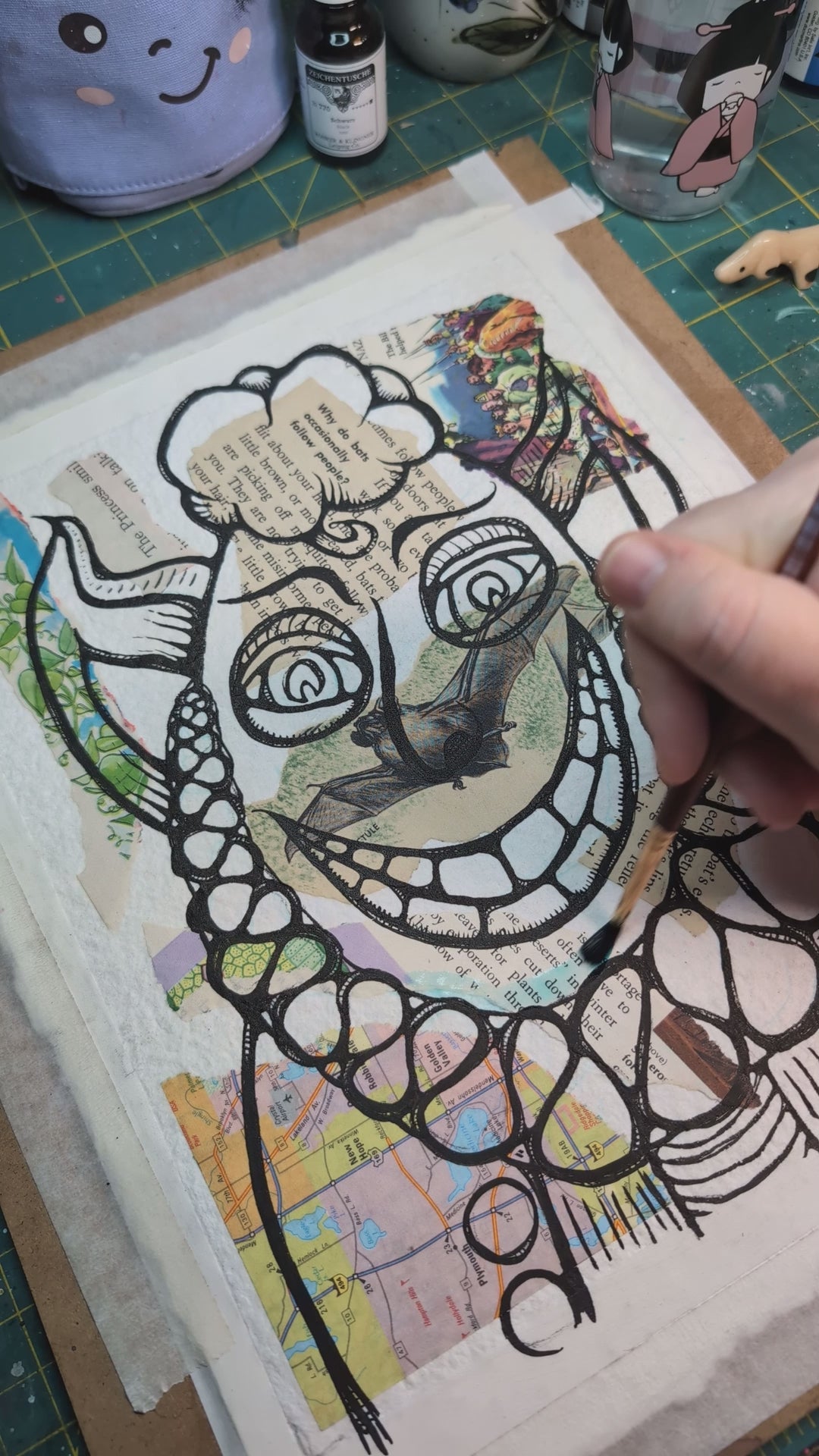 cloaked in dark colors in a dark room all to hide the natural bright colors of his face.